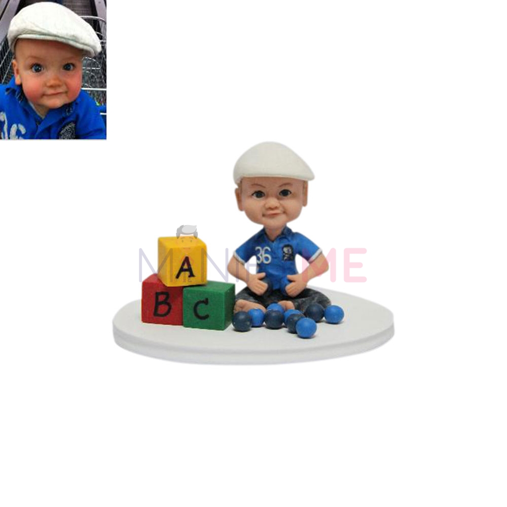 Your cute little baby can be frozen in time forever at their cutest with this Cool Toddler figure. The figure features your toddler sitting on a white platform surrounded by multi-coloured balls and sitting beside colourful ABC blocks. His or her likeness will be included on the figure.