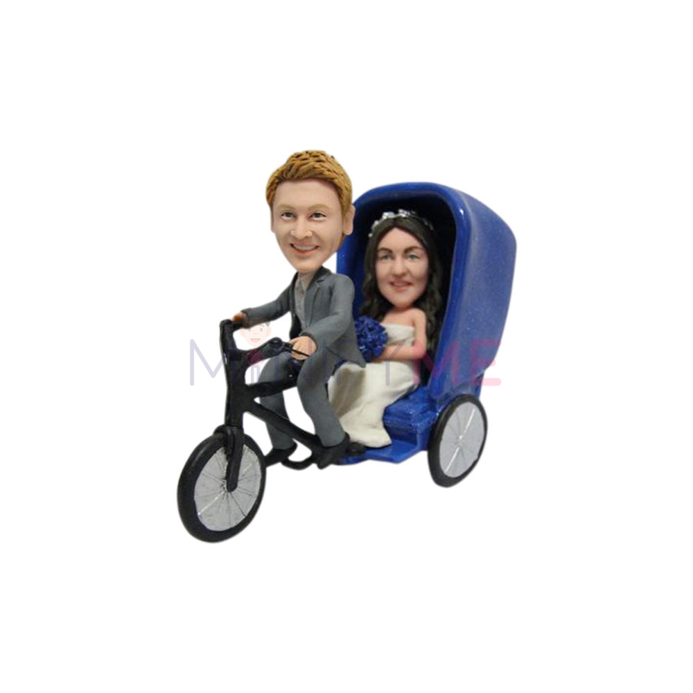 Forget boring limousines and classic cars to symbolise leaving the ceremony and go for something cheekier and funnier with The Rickshaw Wedding cake topper. The figurine features the groom peddling the bride away in a rickshaw. The bride and groom will be customised with your input and photos.